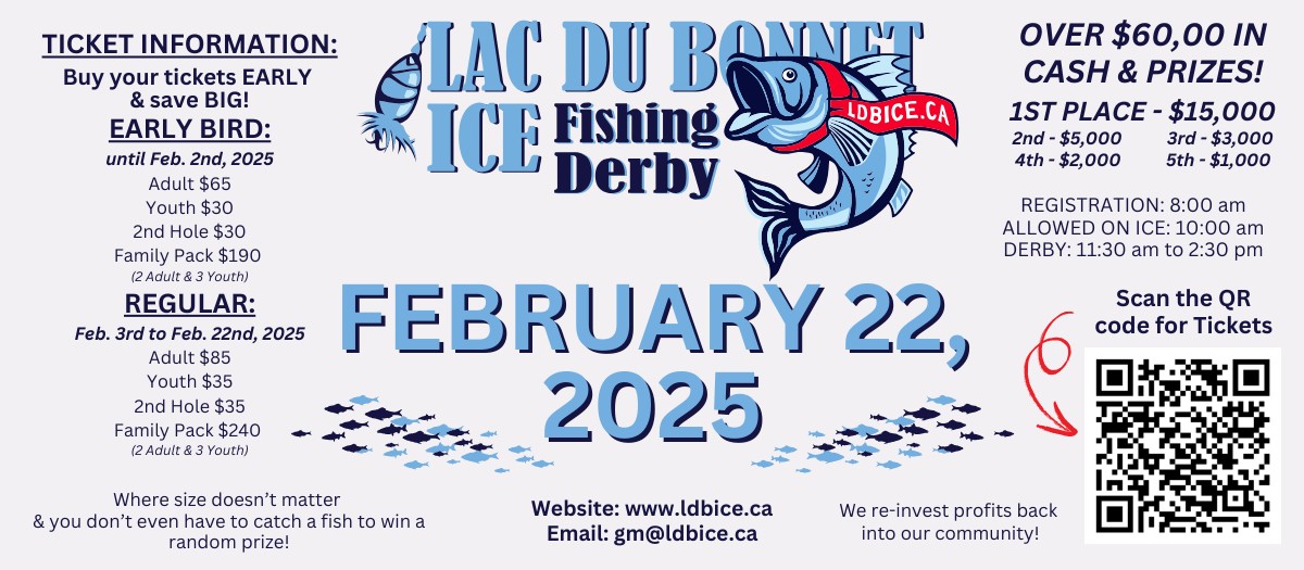 The Lac du Bonnet Ice Fishing Derby is an iconic winter event that has etched its name into Manitoba's outdoor recreational history. Held annually on the frozen surface of the Winnipeg River, this celebrated fishing derby has become a beloved tradition, bringing together anglers and winter enthusiasts from near and far. With its unwavering commitment to reinvest profits back into our community, the derby stands as a testament to the enduring spirit of the community and its love for the great outdoors.