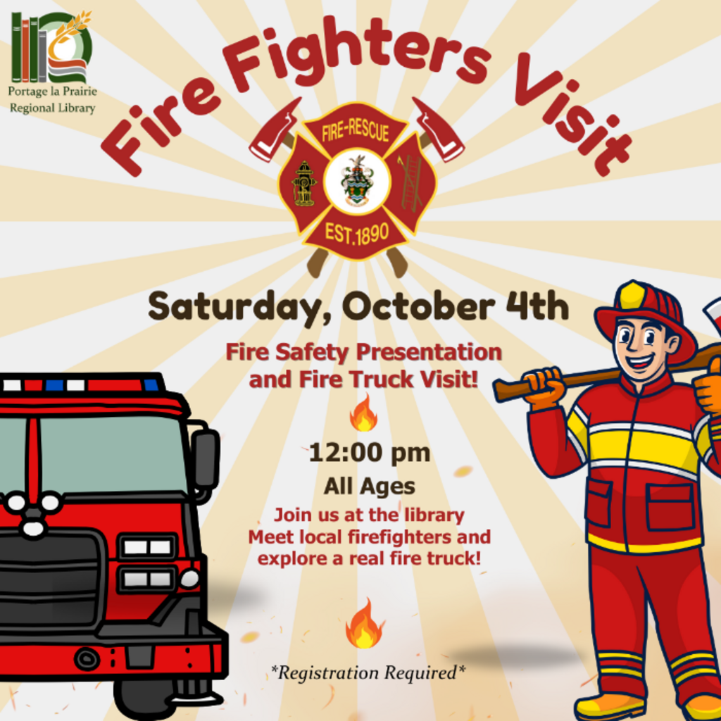In recognition of Fire Prevention Week, join us at the library and meet local Portage la Prairie fire fighters, have a chance to explore a real fire truck and discover key fire safety tips!