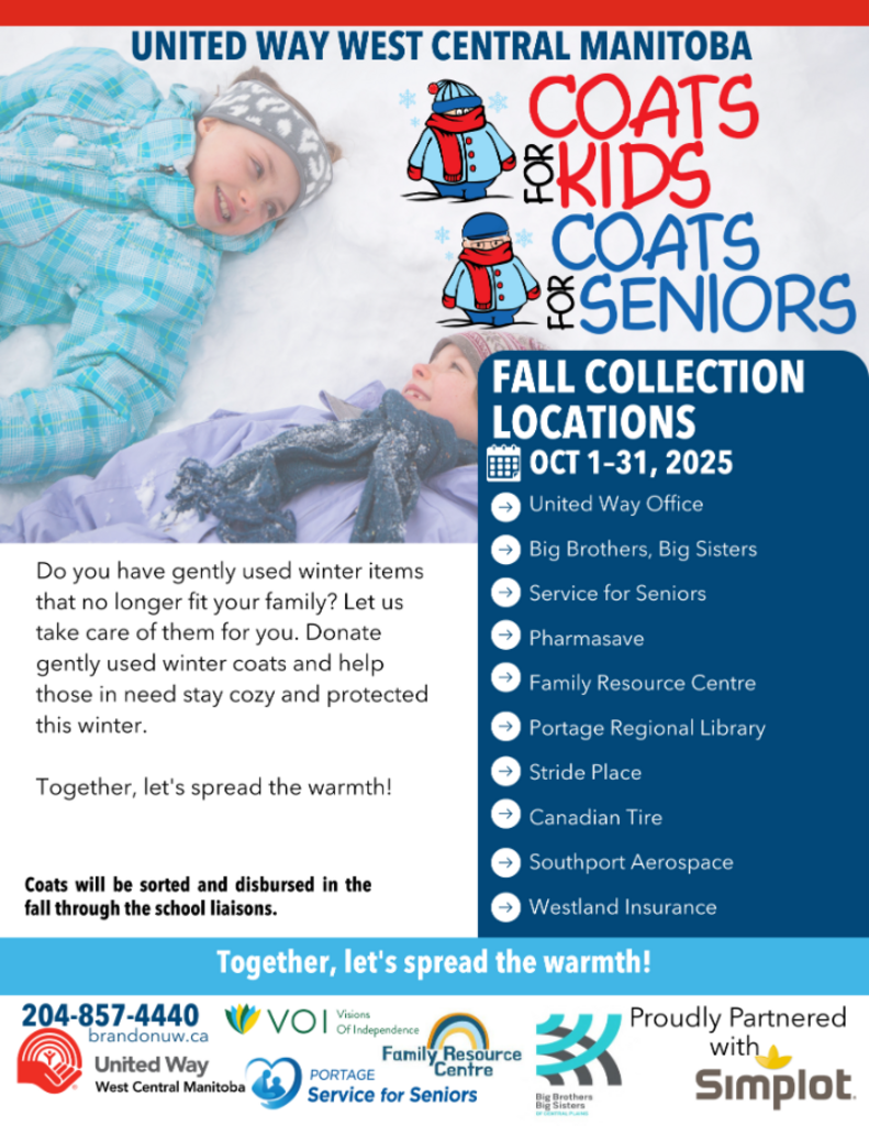 United Way Coats for Kids & Coats for Senior will be collecting gentle used children winter outerwear from October 1 - 31st.