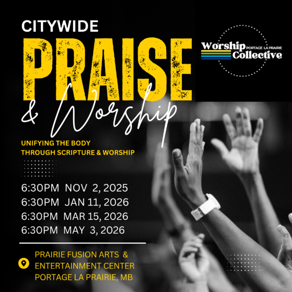 In John 17, Jesus prays that His future disciples would be ONE, and we have the opportunity to be part of answering His prayer! This NOV. 2, join us at the William Glesby Centre where the churches of Portage la Prairie (and area) will gather to worship Jesus and pray for our city.