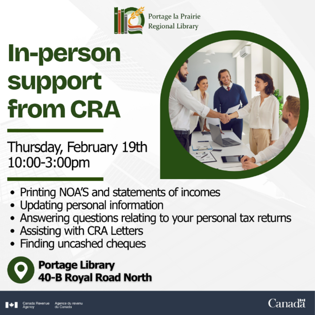 Come to the library and see a CRA outreach officer for help including: