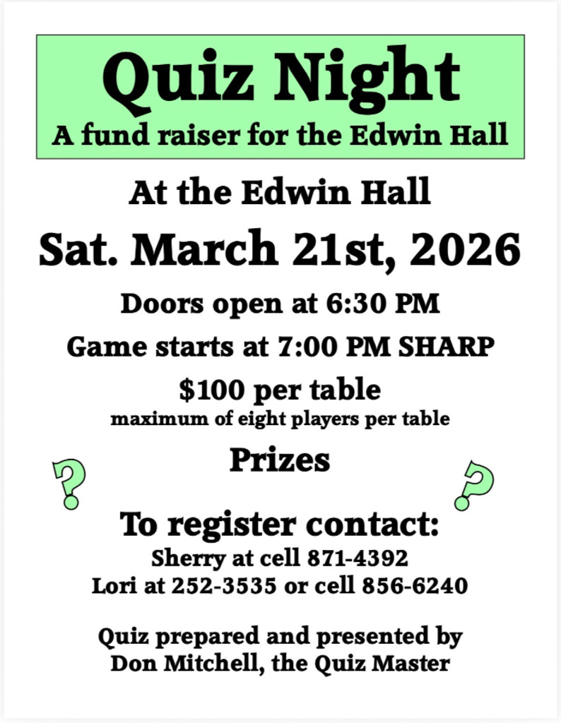 Quiz Night. Fund raiser for the Edwin Community Hall.