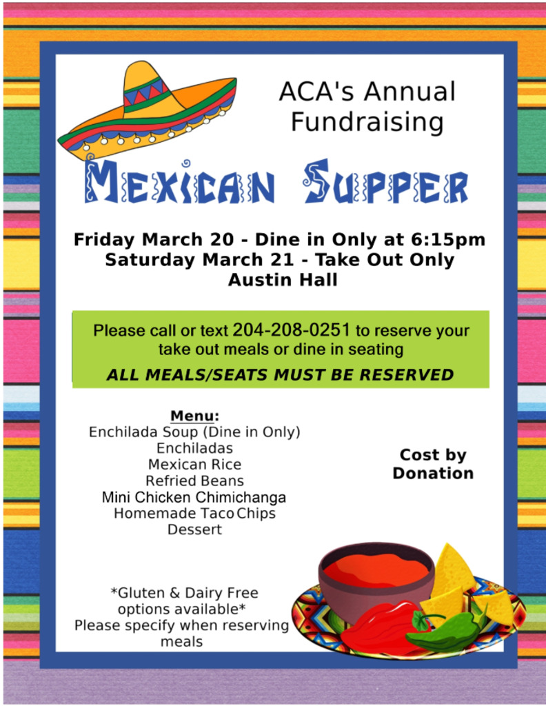 Save the date and reserve your seat for DINE IN Friday March 20 @ 6:15 or TAKE OUT on Saturday, March 21.