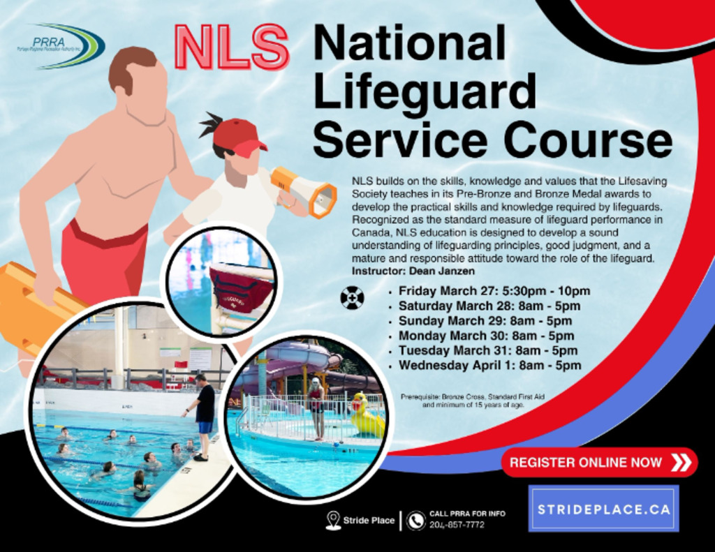 The PRRA National Lifeguard Service (NLS) Course is coming to Stride Place and it’s your chance to earn the national standard certification for lifeguards in Canada!