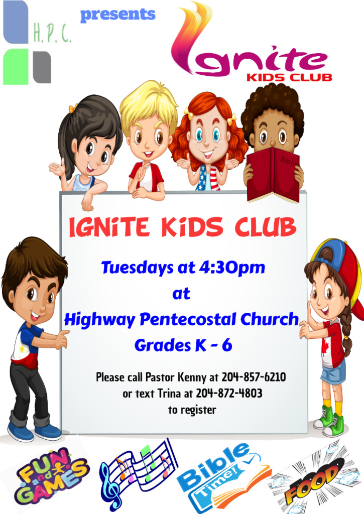 We are excited to announce that Ignite Kids Club will be starting on Tuesday, March 17th at 4:30. This is open to kids in Grades K - 6. We will have a time of worship, Bible stories, activities, games, and then end our time with having supper together. Thank you Highway Community Kitchen for partnering with us to make feeding our kids a possibility!!!