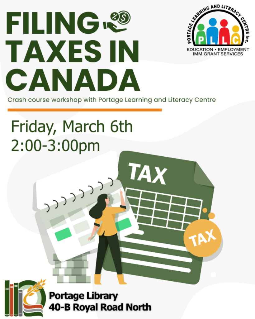 Need a crash course on how to file taxes in Canada? join us at the library with Portage Learning and Literacy Centre.