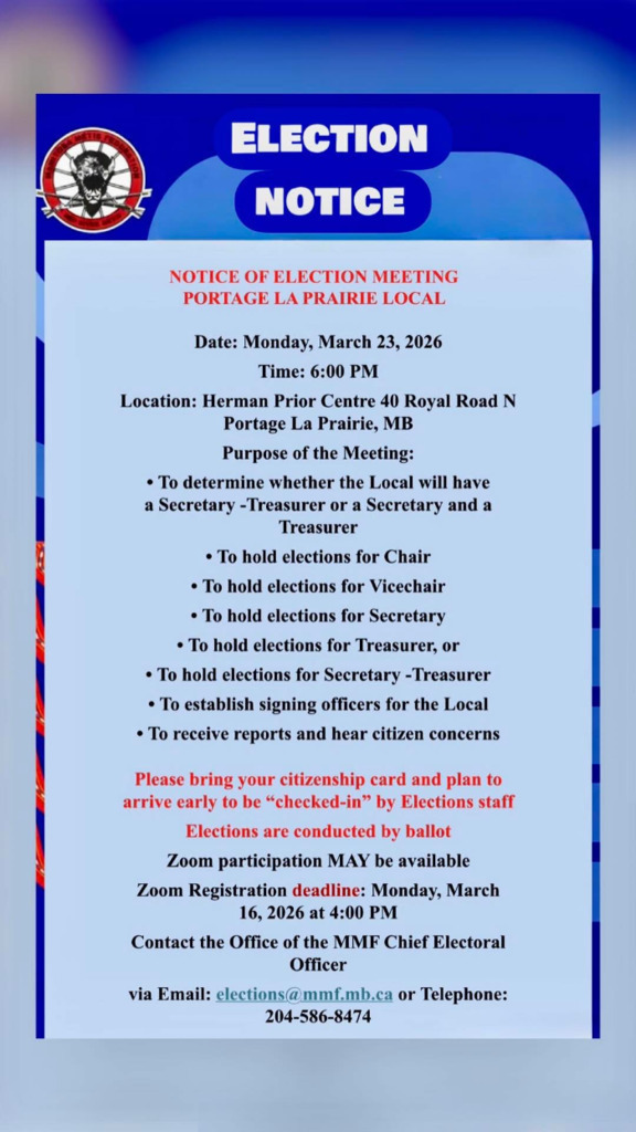March 23,2026 at 6 PM Portage Local Manitoba Metis Federation Elections Please see Poster